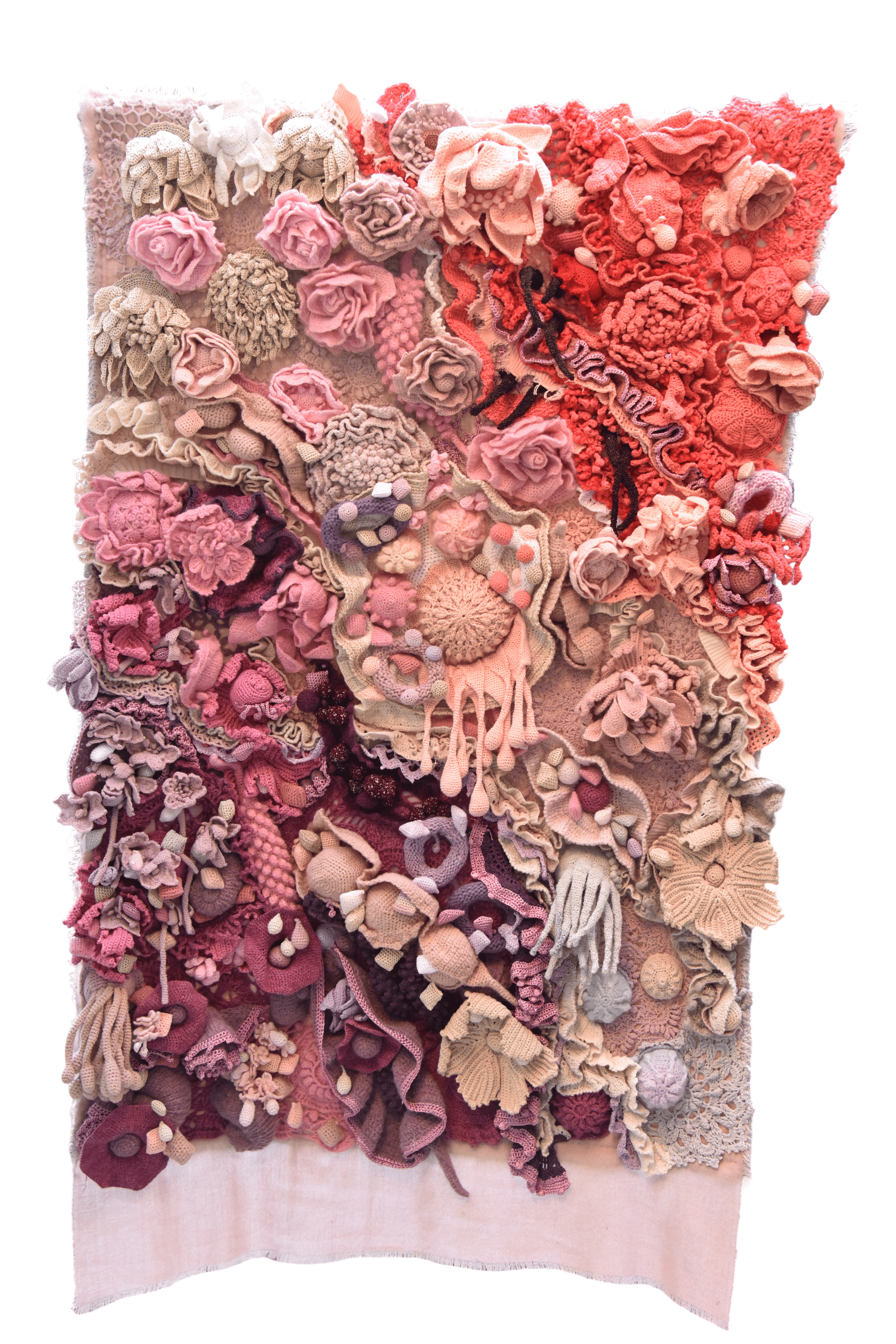 Nature is my main source of inspiration, I am always fascinated and thrilled to re-discover Fibonacci's proportions from the ancestral ammonites to the flower plant in a pot. I admire and research the hand-craft techniques from throughout the evolution of human kind, especially those related to the activities of women. My work panels are like hymns, songs dedicated to the phenomena of nature. They try to express the rich and abundant variety of nature, specifically flowers and plants.